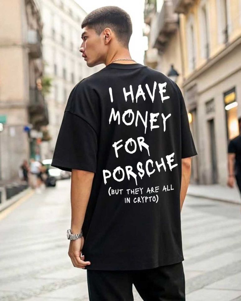 Начало Тениски Oversize тениска I Have Money For Porsche - черна