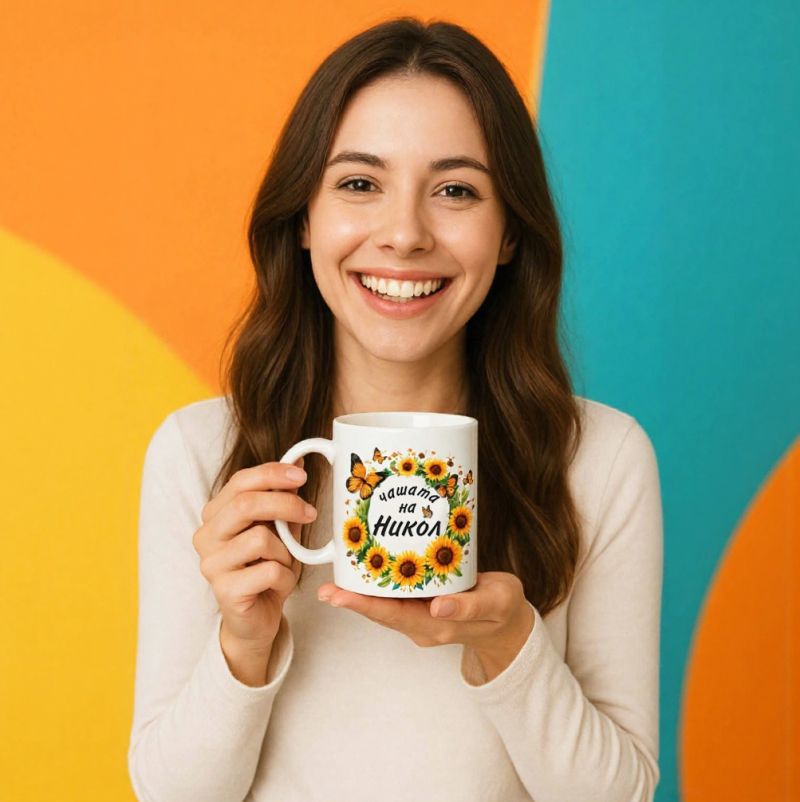 Керамична чаша за кафе и други напитки с надпис "Чашата на Никол"