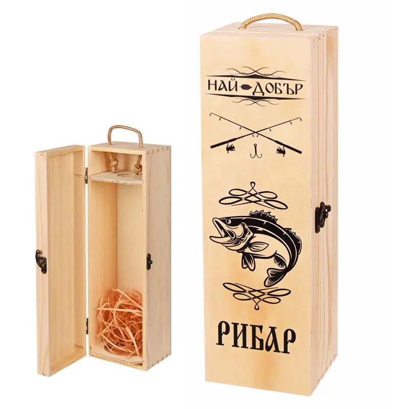 Луксозна дървена подаръчна кутия за вино - "Най-добър рибар".
