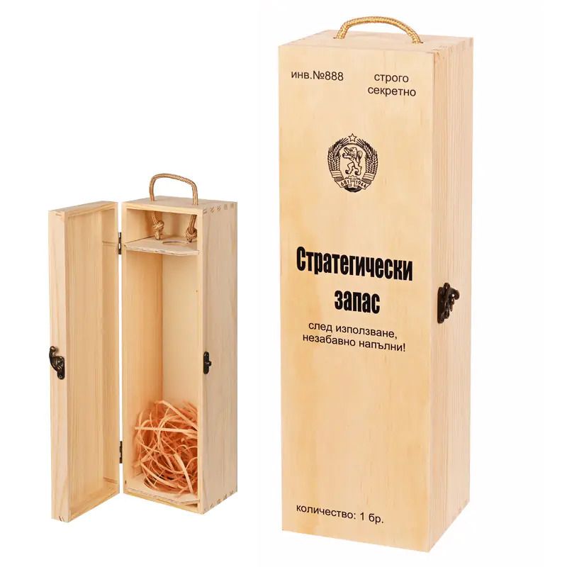 Луксозна дървена подаръчна кутия за вино - "Стратегически запас".