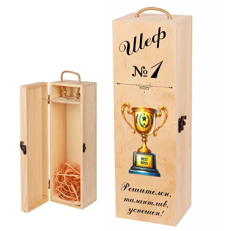 Луксозна дървена подаръчна кутия за вино - "Шеф номер 1".