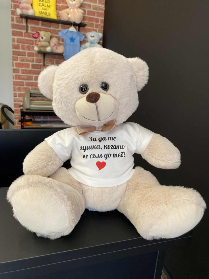 Мече 30 см с надпис "За да те гушка, когато не съм до теб!"
